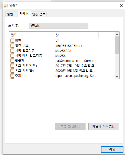 maven.apache.org 홈페이지에서 인증서 다운 & 로컬에 iomport 시키면 된다.