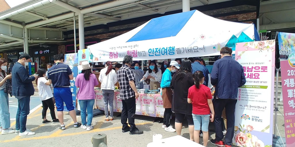 충남도와 서산시, 2020계룡군문화엑스포조직위원회는 행담도 휴게소에서 도내 관광지와 상품을 홍보했다고 10일 밝혔다.