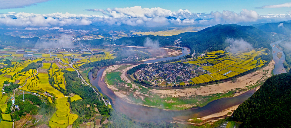 코로나19는 인류 문명사의 새로운 획을 긋는 사건이 되고 있다. 인류의 생활문화 자체를 완전히 바꿔 놓고 있기 때문이다. 이전엔 생각하지도 못했던 마스크 쓰기가 이제 전 세계인들의 공통 패션으로 자리 잡았다. 또한 ‘뭉쳐야 살고 흩어지면 죽는다’며 단합을 강조하던 격언도 ‘뭉치면 죽고 흩어져야 산다’로 바꿔 놓을 정도다. 서로가 적당하게 거리를 두고 마주해야 한다. 민족의 최대 명절인 한가위에도 정 많은 우리 가족이 서로 손사래를 치며 ‘올해는 오지 마라’하고 있다. 코로나19가 종식되고 건강하게 서로 만나자고 한다. ‘비대면 시대’라고 한다. 비대면 시대에 관광 패턴도 바뀌었다. 사람들이 몰리는 관광지 대신 가족과 단란하게 보낼 수 있는 한적한 관광지가 인기다. 하회마을과 병산서원도 코로나블루를 날리며 한가하고 여유롭게 거닐 수 있는 좋은 곳이다. 사진은 낙동강물이 태극 모양으로 마을을 돌아 흐르는 풍산 유씨 씨족마을 하회.