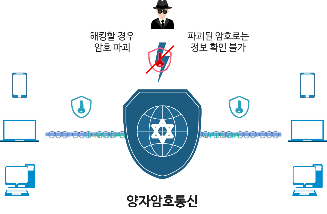현재 통신망은 신호 줄기의 끊김과 이어짐으로디지털 신호인 ‘0’과 ‘1’을 구분해서 데이터를 주고받는다. 보안을 위해암호키를 사용하지만 유출되면 관련 정보가 빠져나갈 수 있다.