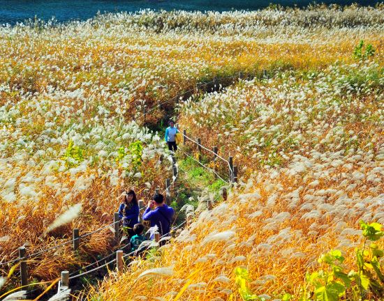 15일 군에 따르면 가곡면 갈대숲은 10월 가을이면 흩날리는 갈대와 억새풀이 장관을 이룬다. 최근 이 갈대숲에서 추억을 남기려는 관광객들이 발길이 이어지고 있다.